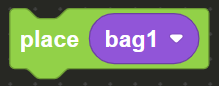 Dále budete používat bloky Open, Place a Close z nabídky Actions v panelu nástrojů. Přesuňte se k X značce a postavte se čelem k truhle, použijte blok kódu Open k otevření truhly, použijte blok kódu Place a jako jeho parametr přidejte blok proměnné bag1 z nabídky Variables. Tím umístíte pytel do truhly.