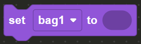 Projděte polem a seberte dýni tak, že po ní projdete. K dispozici je proměnná s názvem: bag1, kterou lze nastavit pomocí bloku kódu set_variable. Přetáhněte blok kódu set_variable z nabídky Variables v panelu nástrojů a přidejte bag1 jako proměnnou.