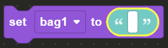 Přidejte řetězec "Pumpkin" do bubliny na bloku kódu set_variable přesně tak, jak je napsán (nezapomeňte na velké P). Tímto se dýně efektivně vloží do pytle, což vám umožňuje ji uložit, jinými slovy se tím nastaví hodnota proměnné na tento řetězec.