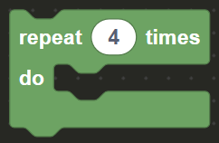 כדי לעבור את המבוך תוך שימוש בלא יותר מ-6 בלוקים, עליך להשתמש בבלוק repeat. בלוק זה דומה לבלוקי לולאת while אך פועל בצורה מעט שונה: בלוקי repeat מבצעים חזרה על מספר פעמים מוגדר מראש, במקום להשתמש בתנאי כמו count בבלוקי לולאת while.